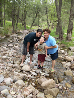I thought his ankle had swollen up due to walking around in the creekbed (it sure felt nice) but it also looks like a bug bite may have been the culprit.